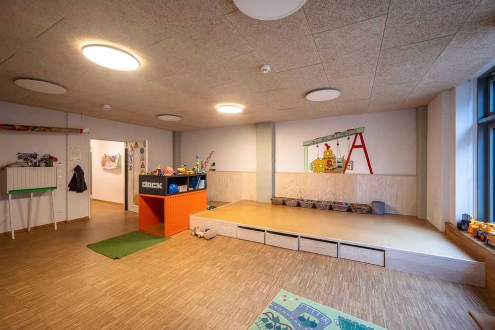 Im Rahmen eines offenen Konzeptes bieten wir im Krippen- und Elementarbereich auf ca. 800m² bis zu 80 Betreuungsplätze.