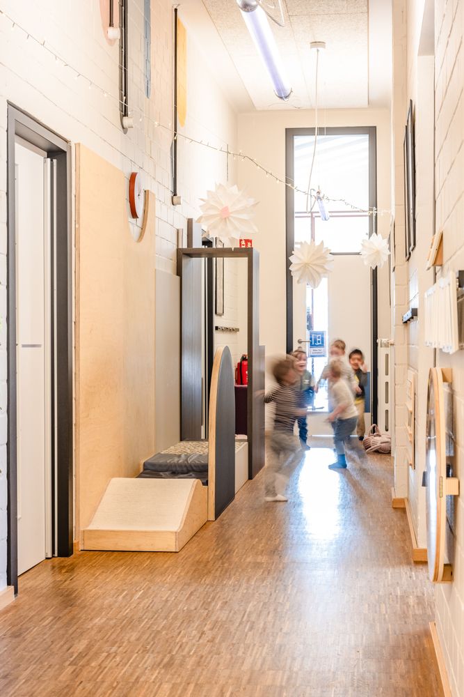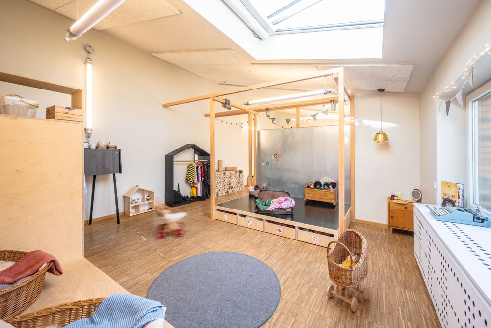 Neugierige EntdeckerInnen haben bei uns in unterschiedlichen Schwerpunkträumen wie im Atelier, im Bau- oder Rollenspielraum ausreichend Platz zum forschenden Lernen, Kreativsein, Spielen und Bewegen.